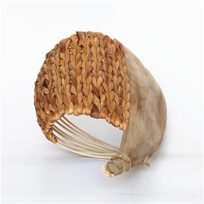 手工制作蒲草和泡桐混搭编织摆盘托盘装饰器皿摆件